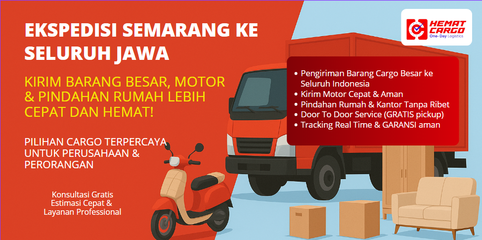 Kami siap melayani kebutuhan jasa cargo Semarang, ekspedisi Semarang ke seluruh Jawa, jasa kirim motor Semarang, hingga pindahan rumah dan logistik antar kota dengan pelayanan terbaik dan harga termurah.